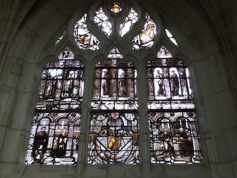 de beaux vitraux...dont une grisaille du milieu du XVI ... et la rosace....